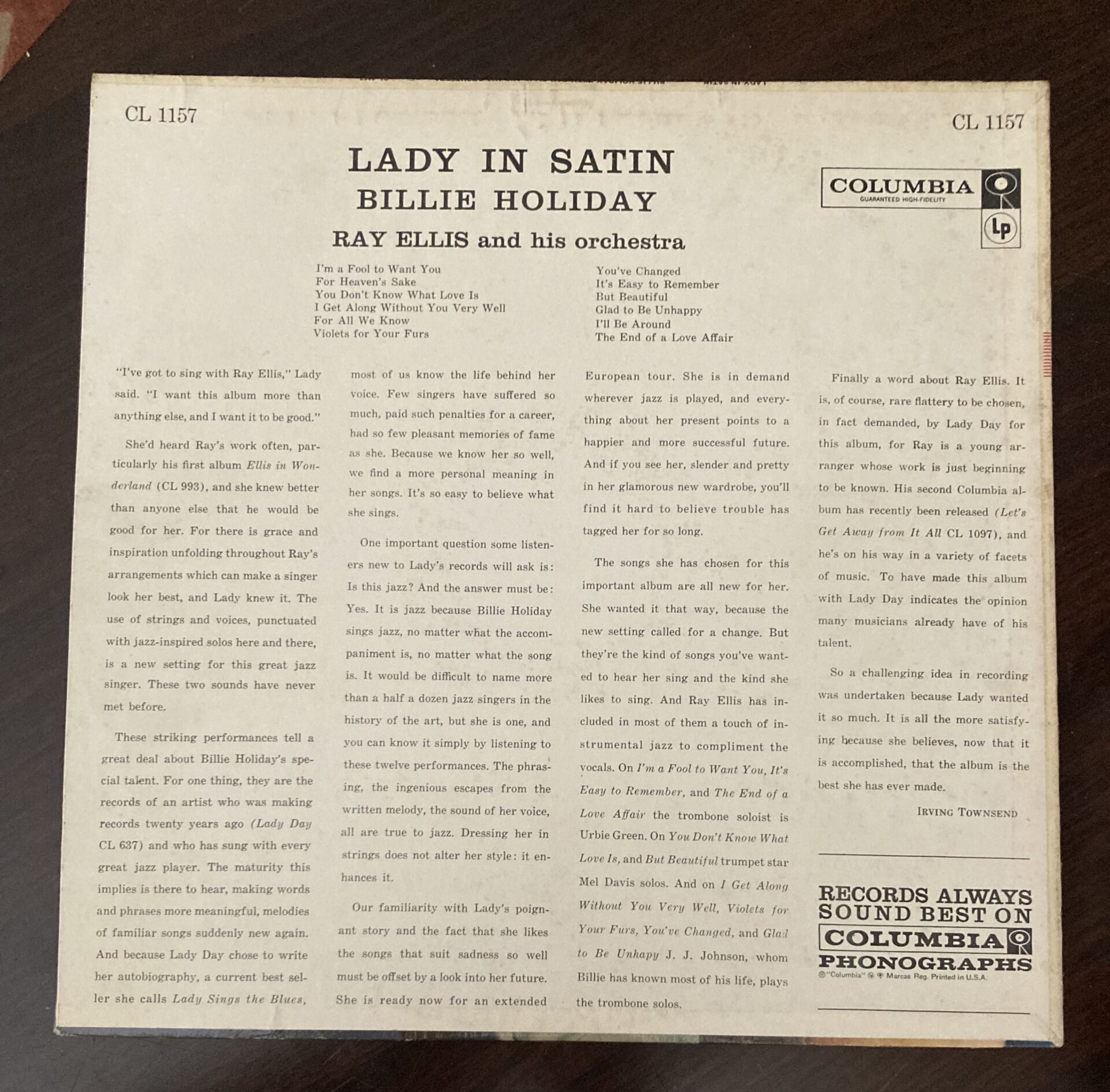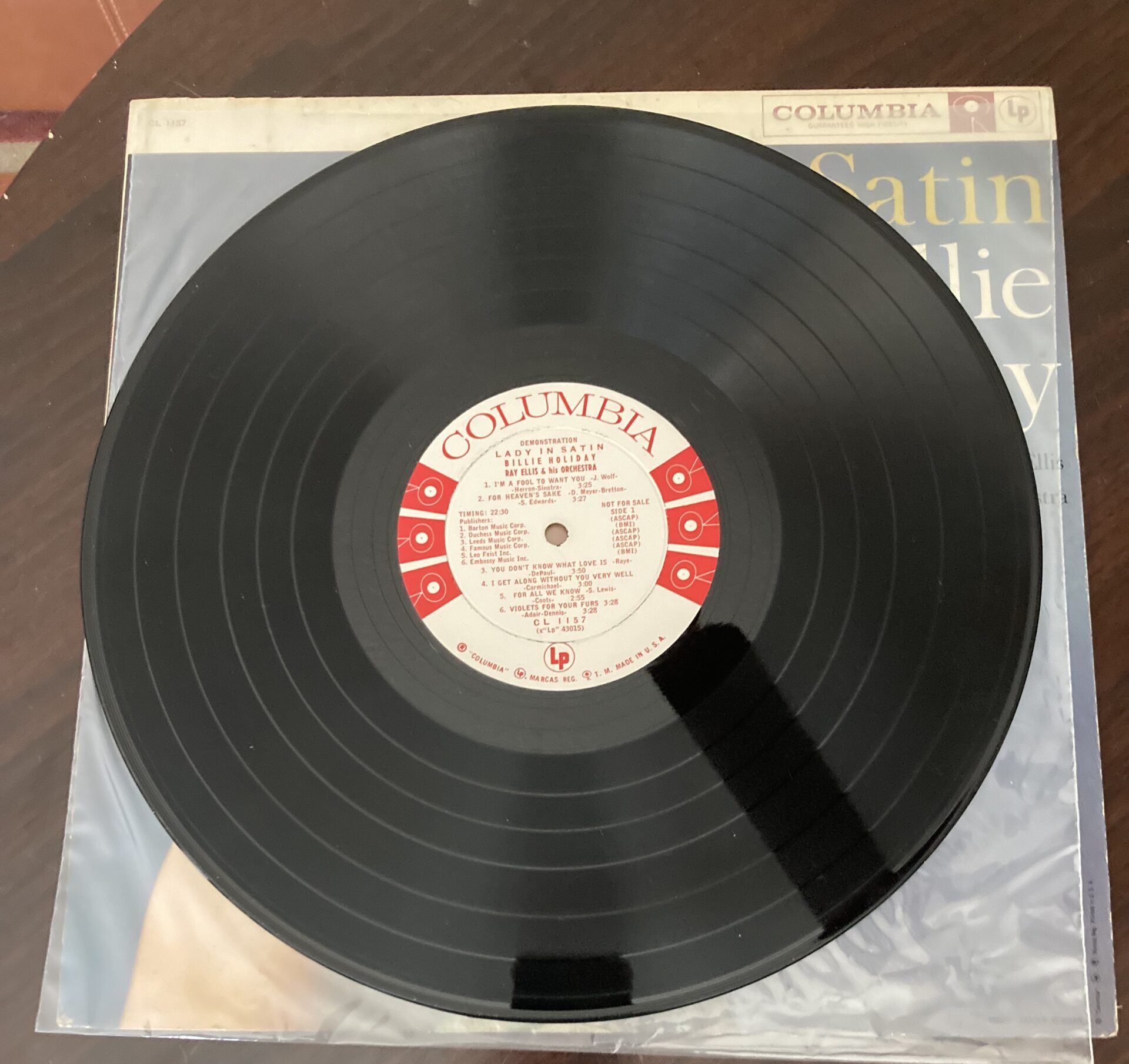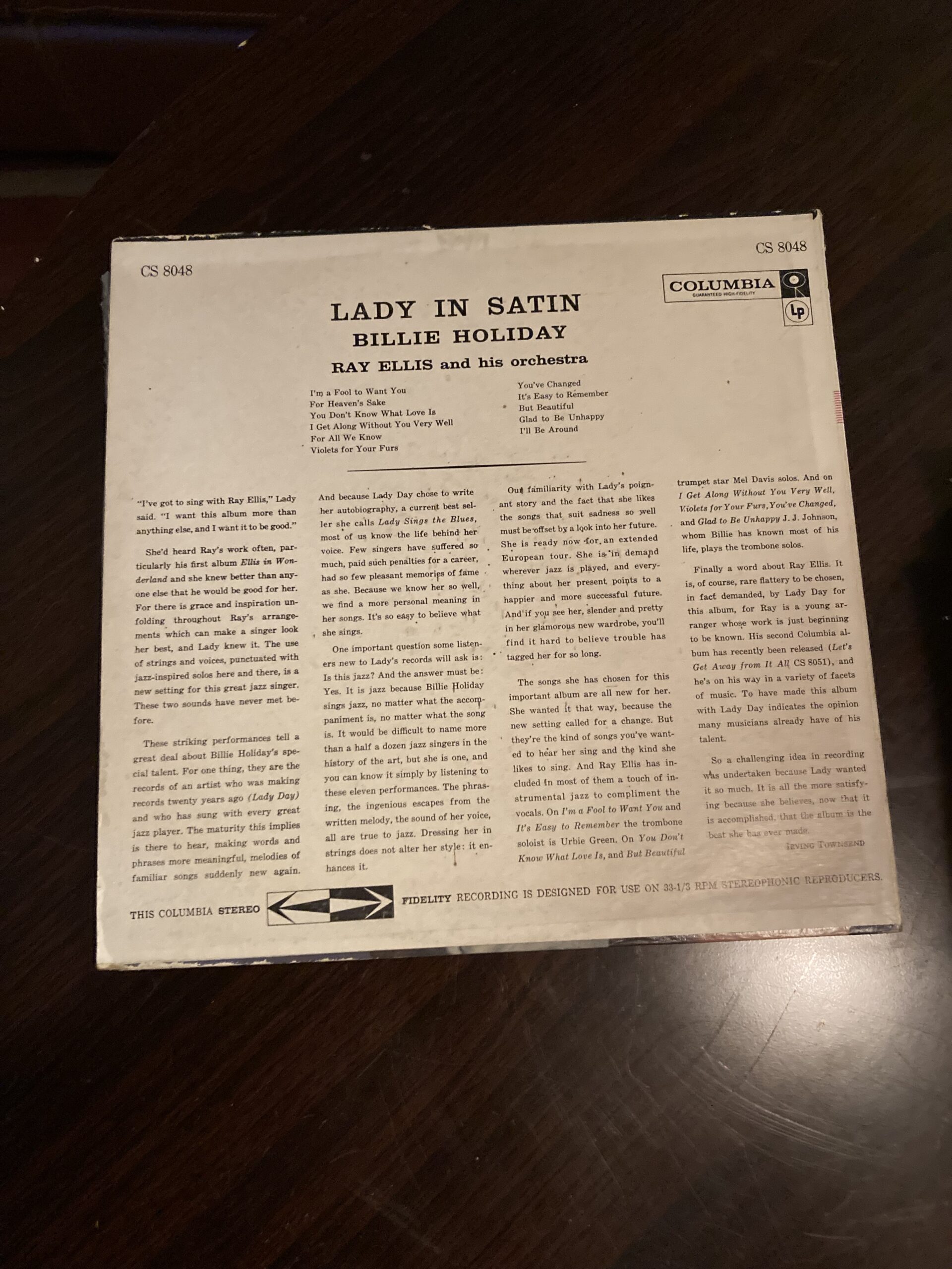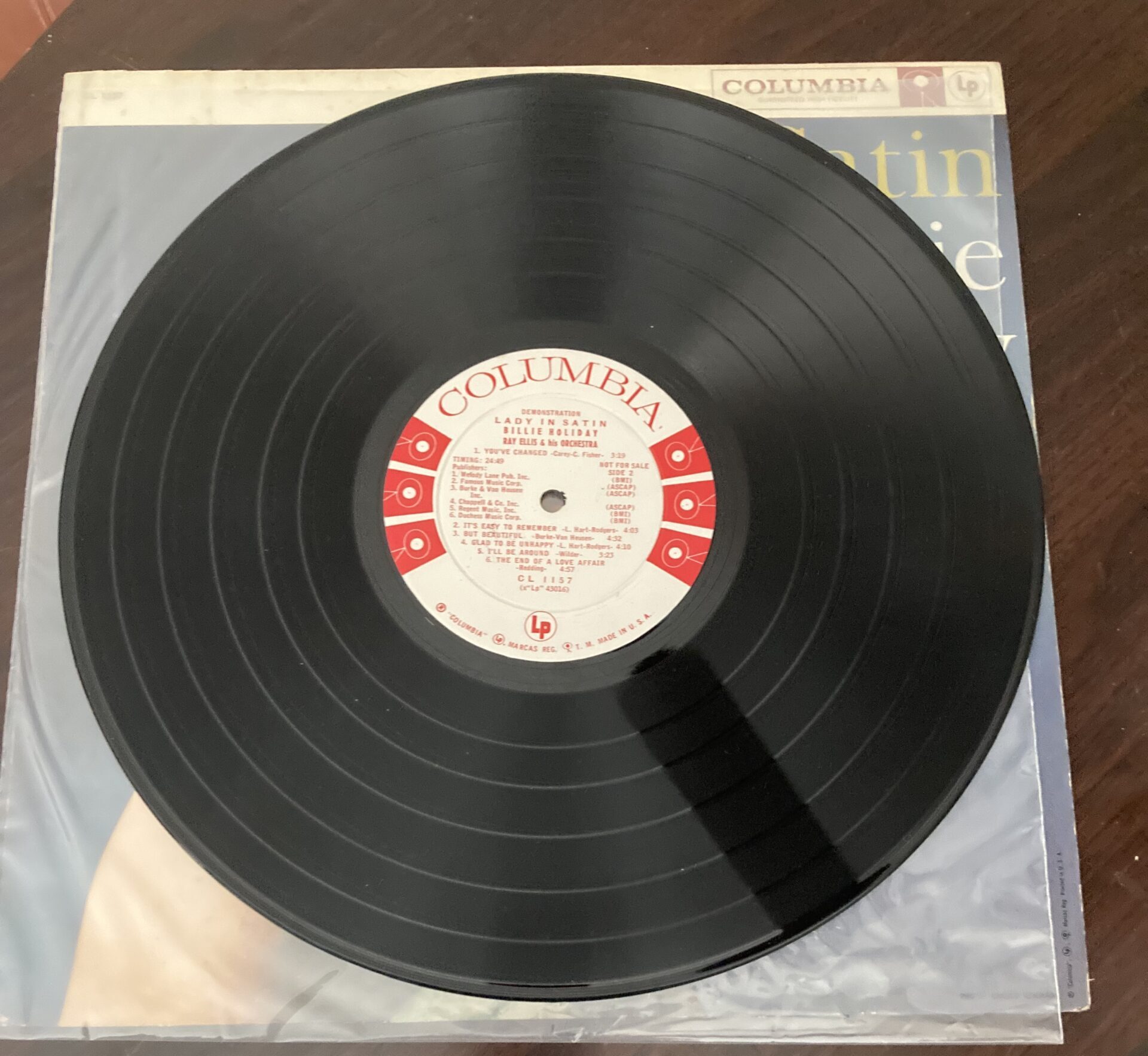 Here we are looking at Billie Holiday’s Lady In Satin. This one is a promo, white label Columbia from 1958.